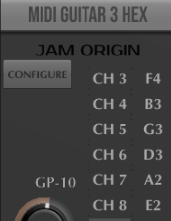 When I start up MIDI GUITAR 3 HEX it’s displaying ‘NO HEX INPUT!’ under MIDI GUITAR 3 HEX. Under Settings, Audio Interface I’ve designated GP-10 (Channel 1 default) as the Input Device and Focusrite USB ASIO (Channel 1+2 default) as the Output Device. There is no sound when I play the guitar. Also when I add the MIDI Guitar 3 plugin to Cantabile and send the GP-10 MIDI input to it and then MIDI out to Pigments there is no sound.