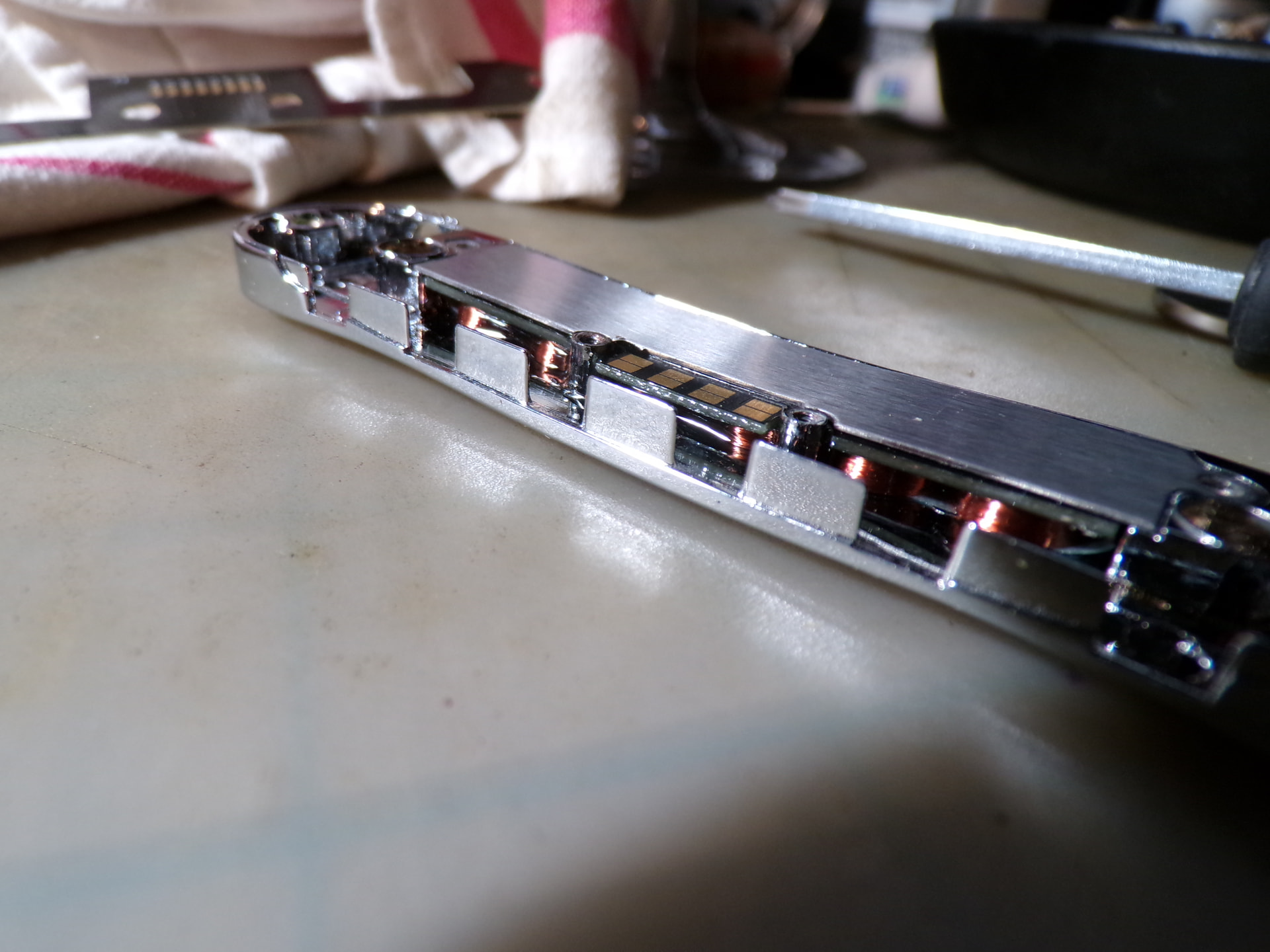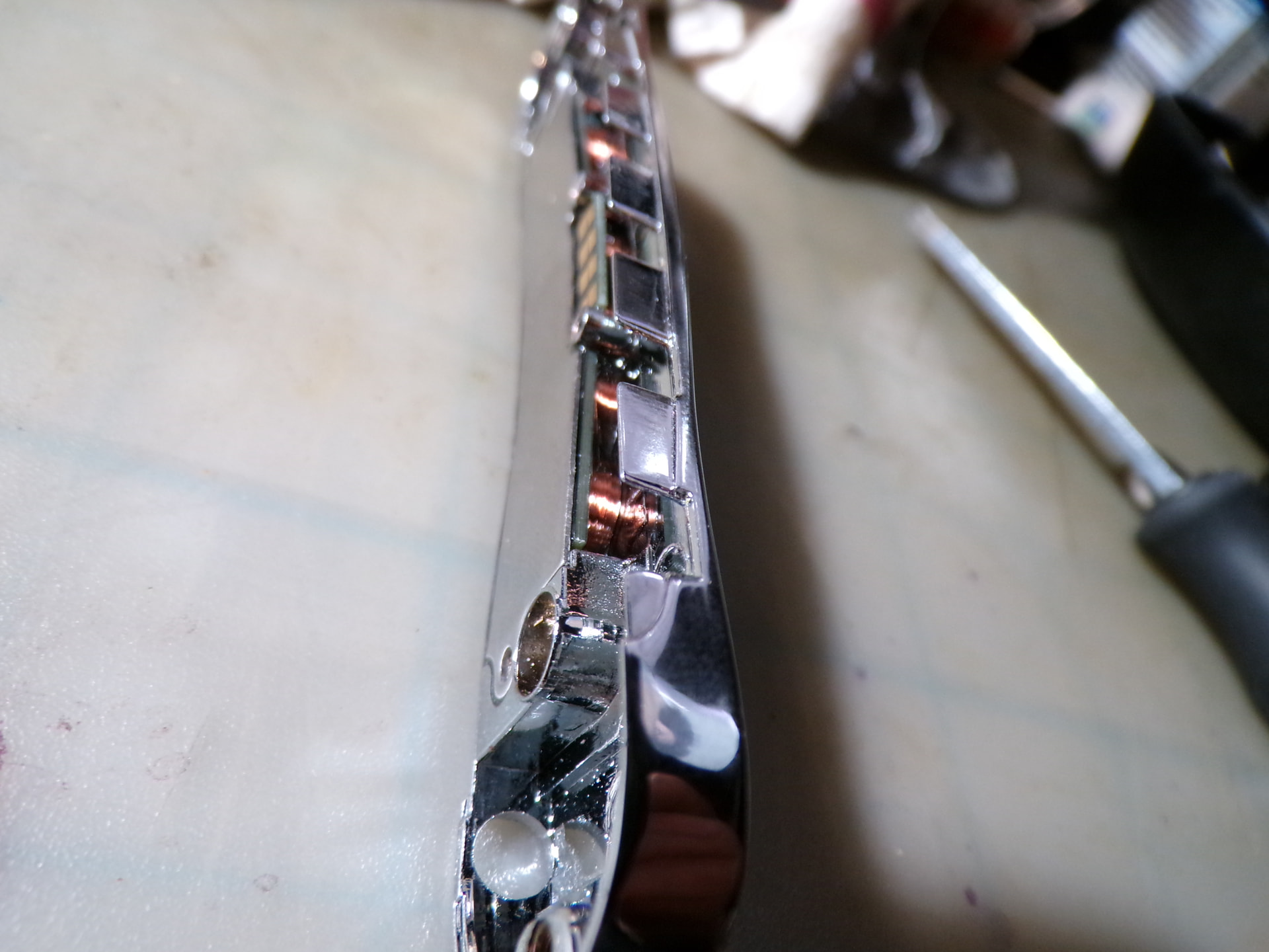 while i had the pickup off of the guitar i took a few pix, here’s what the insides looks like for those who might be interested: