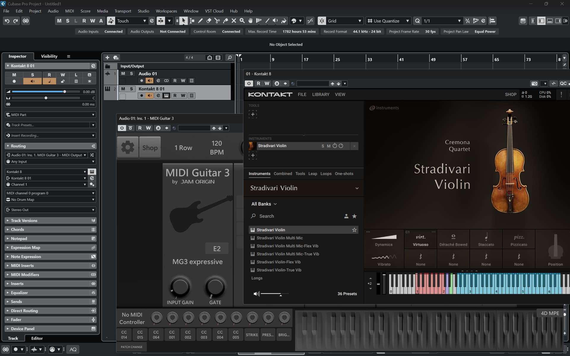 I assume you are doing this in Cubase 14. I have tried to reproduce what you described. The Kontakt preset remains on C1 (Virtuoso) when I connect MG3 as input. Strange is that you canāt even see which preset is selected. I used Cubase 14 Pro and Kontakt 8.