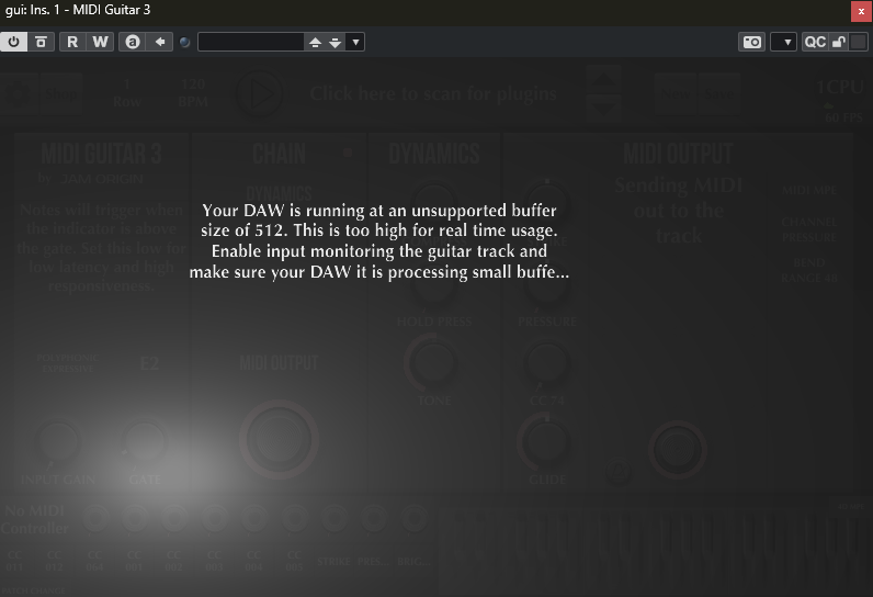 I DID initially have it at 512. But my issue was with MIDI Guitar 3 not being able to then recognize that I had adjusted it.