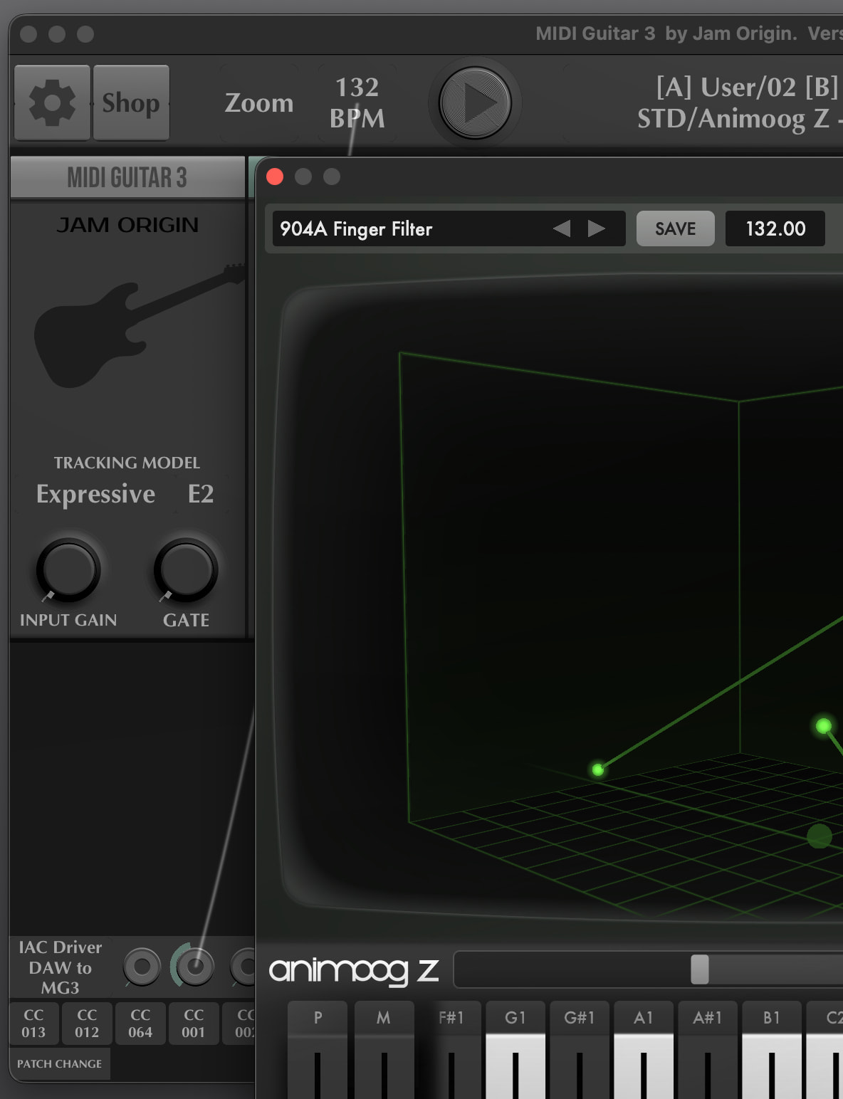 My rig: Boss sy 1000 sub out to midi guitar 3. Controller 3 tab pedal for the tempo.