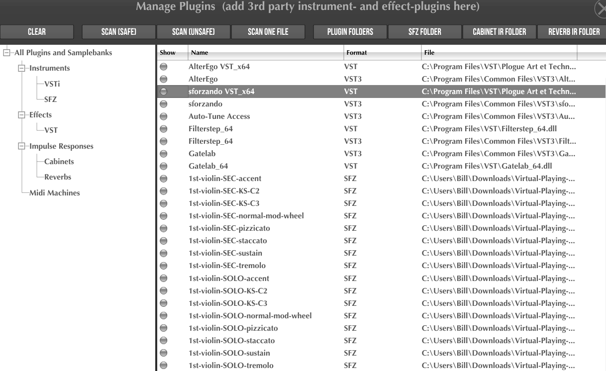 Honestly, I still don’t understand your problem or what you’re trying to do. In the subject line, you write about MG2 Standalone and later something about your DAWs. You’re looking for instruments in the patch list and you claim to “see” things that aren’t visible in the attached screenshots. Do you want to load “something like Sforzando” or something else?