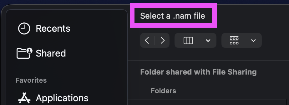 Thanks Luke. I thought that but when I search my mac for .nam I get this list which doesn’t seem to contain an appropriate file.