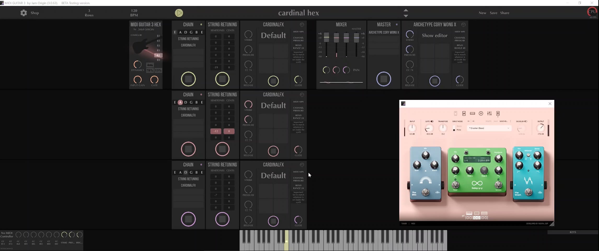 i expect to employ this immediately on the top two strings of a fretless bass with independent pickups. this will allow me to use mg2 and retain pitch bend plus it sounds much better than my previous solution (octaver).